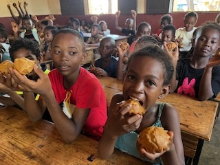 Le président de l’école de rugby nous a amenés en 2019 dans l’école de sa paroisse ; école située dans un quartier défavorisé de Diégo; il a suggéré à Tonton Ovalie d’apporter de l’aide à cette école de plus de 300 enfants.
